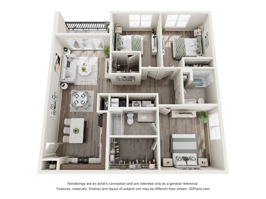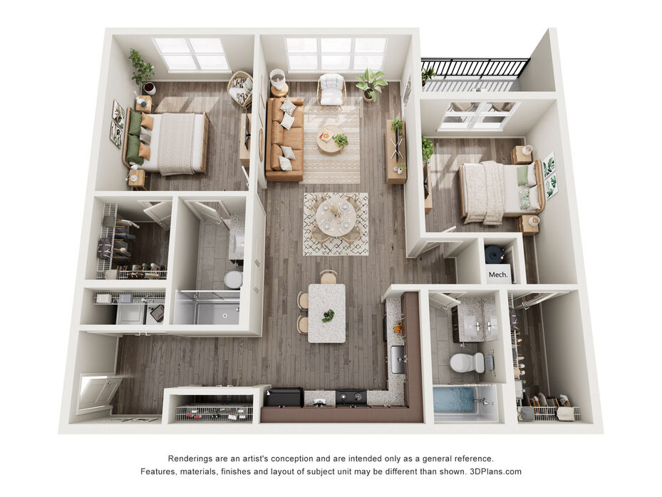Renderings are intended only as a general reference. Features, materials, finishes and layout of units may be different than shown. For more details, ask a leasing representative about specific apartment features.